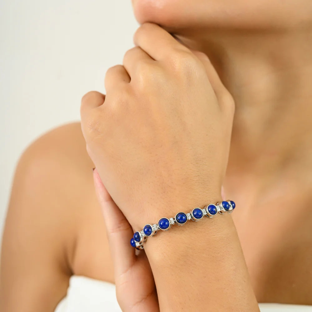 100% Authentic Blue Lapis & American Diamond Tennis Bracelet For Birthday Gift Customized Silver Jewelry