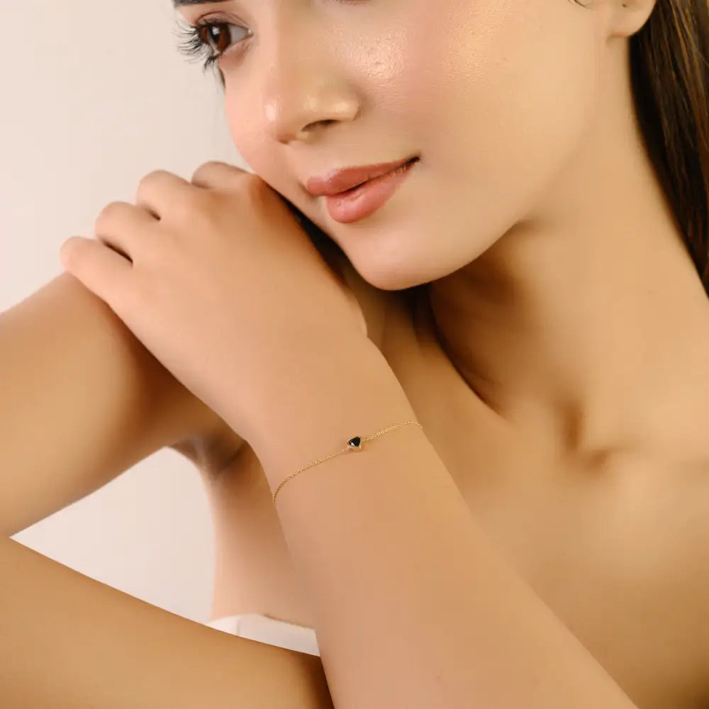 Dainty Elegant 3.2X3.2 MM Blue Sapphire Daily Wear Single Stone Chain Bracelet 14K Gold