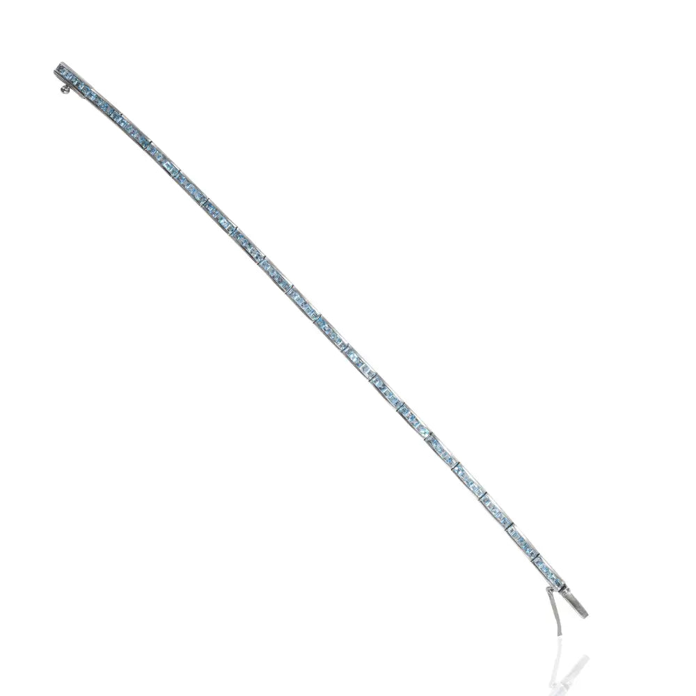 December Birthstone Blue Topaz Sleek Tennis Bracelet For Daily Wear 925 Sterling Silver