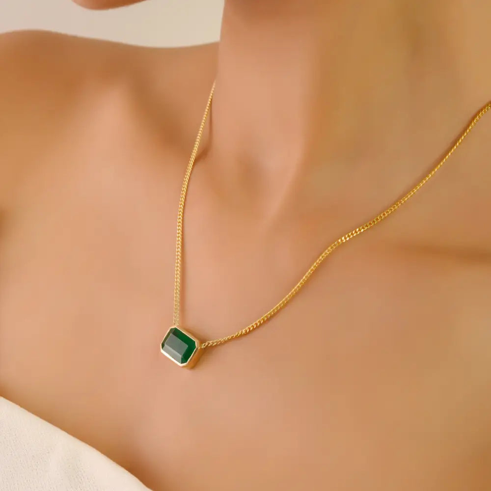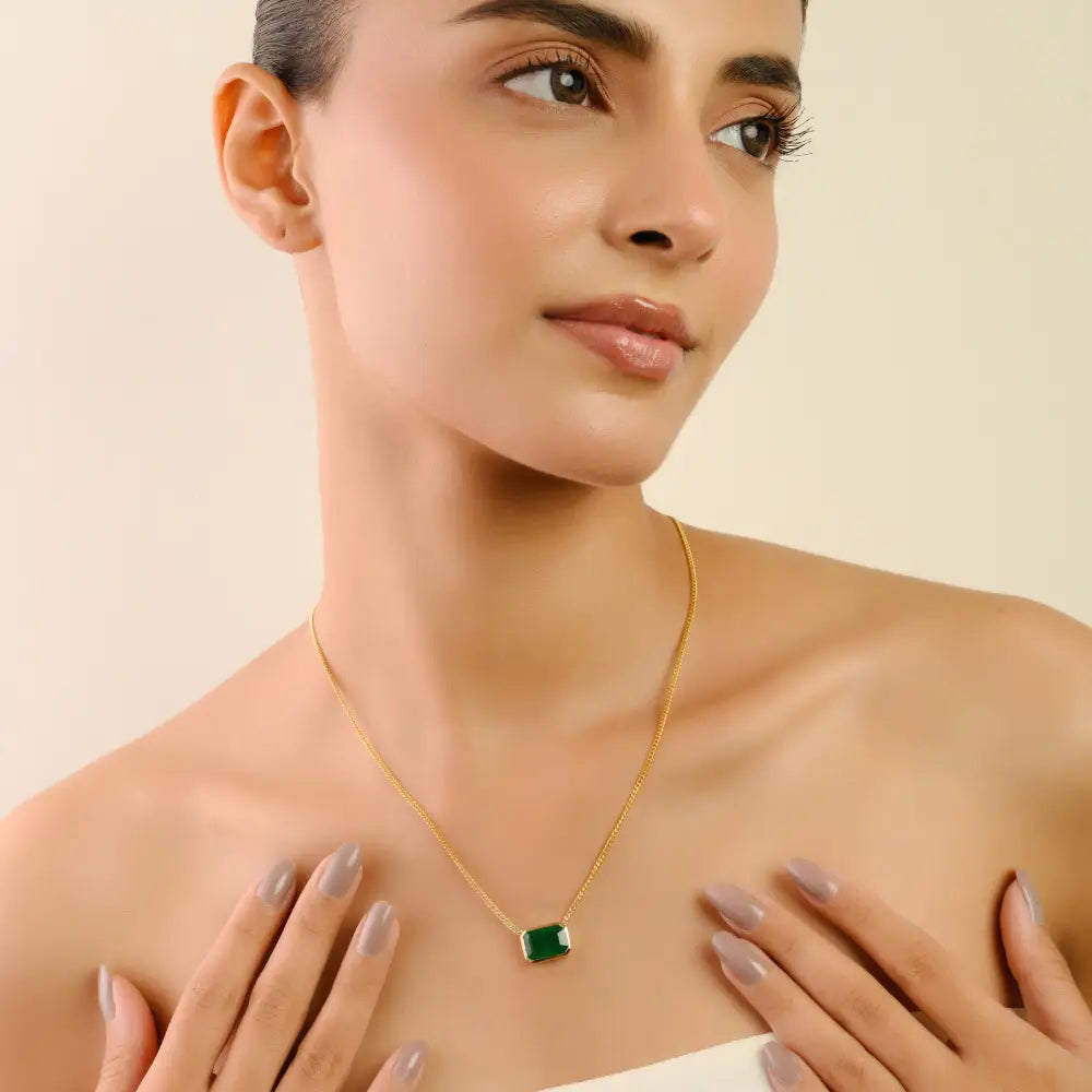 Octagon 11X8 MM Emerald 14K Solid Yellow Gold Single Stone Cuban Chain Pendant Necklace