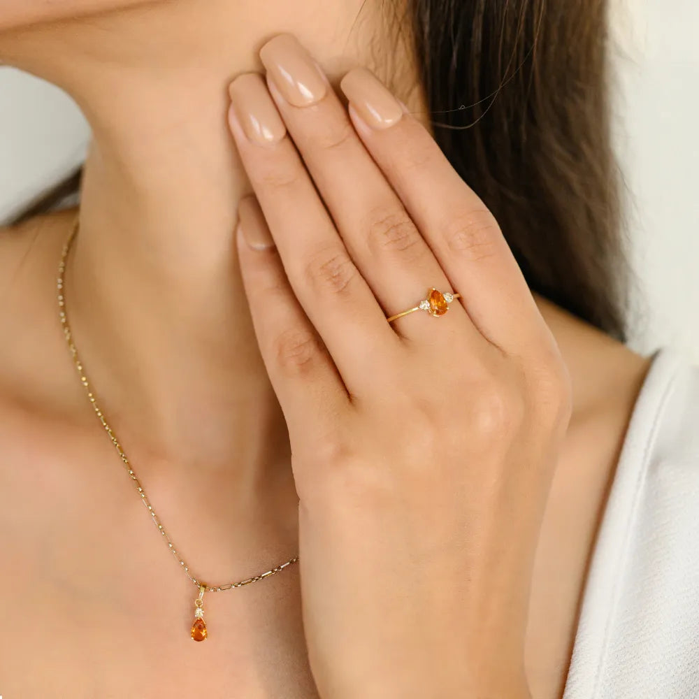 Ring Earrings & Pendant Citrine & Diamond 3 Pcs Combo Jewelry Set Solid Yellow Gold