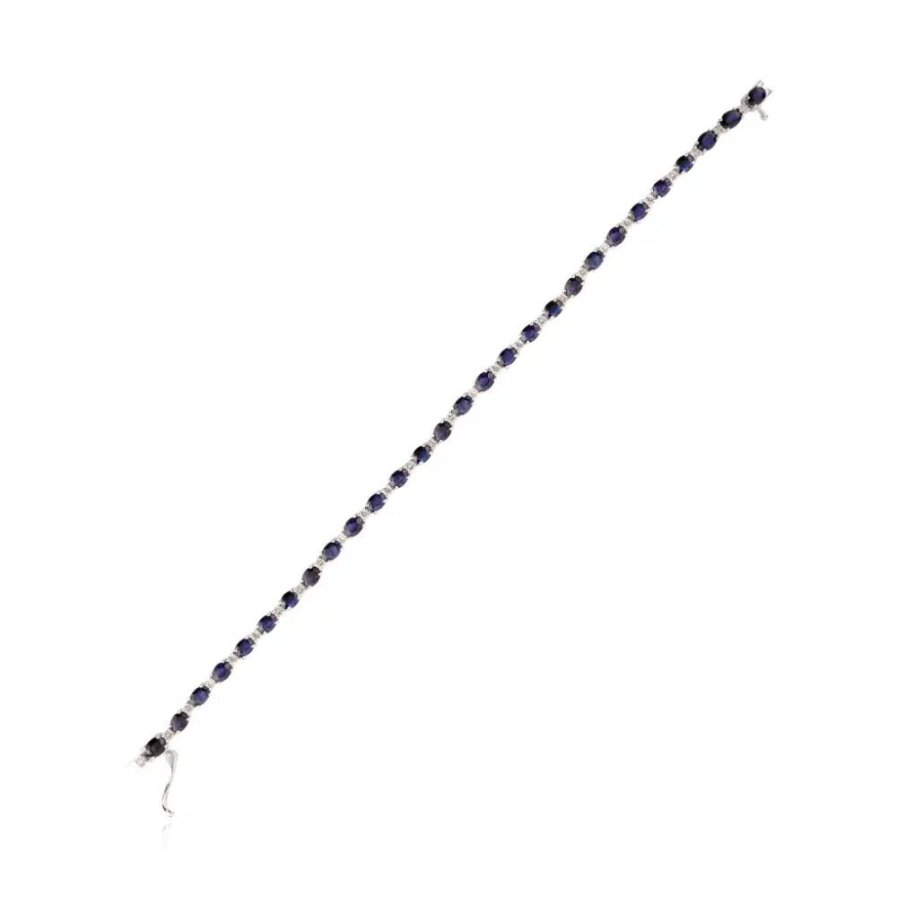 Stackable Jewelry Blue Sapphire & Diamond Tennis Bracelet Unisex 14K Solid White Gold Jewelry