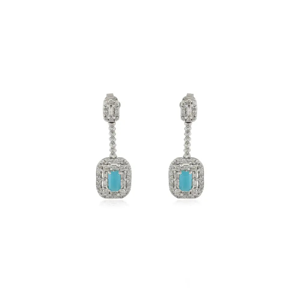 Turquoise & Diamond Convertible Stud-and-Drop Earrings For Women 14K Solid White Gold